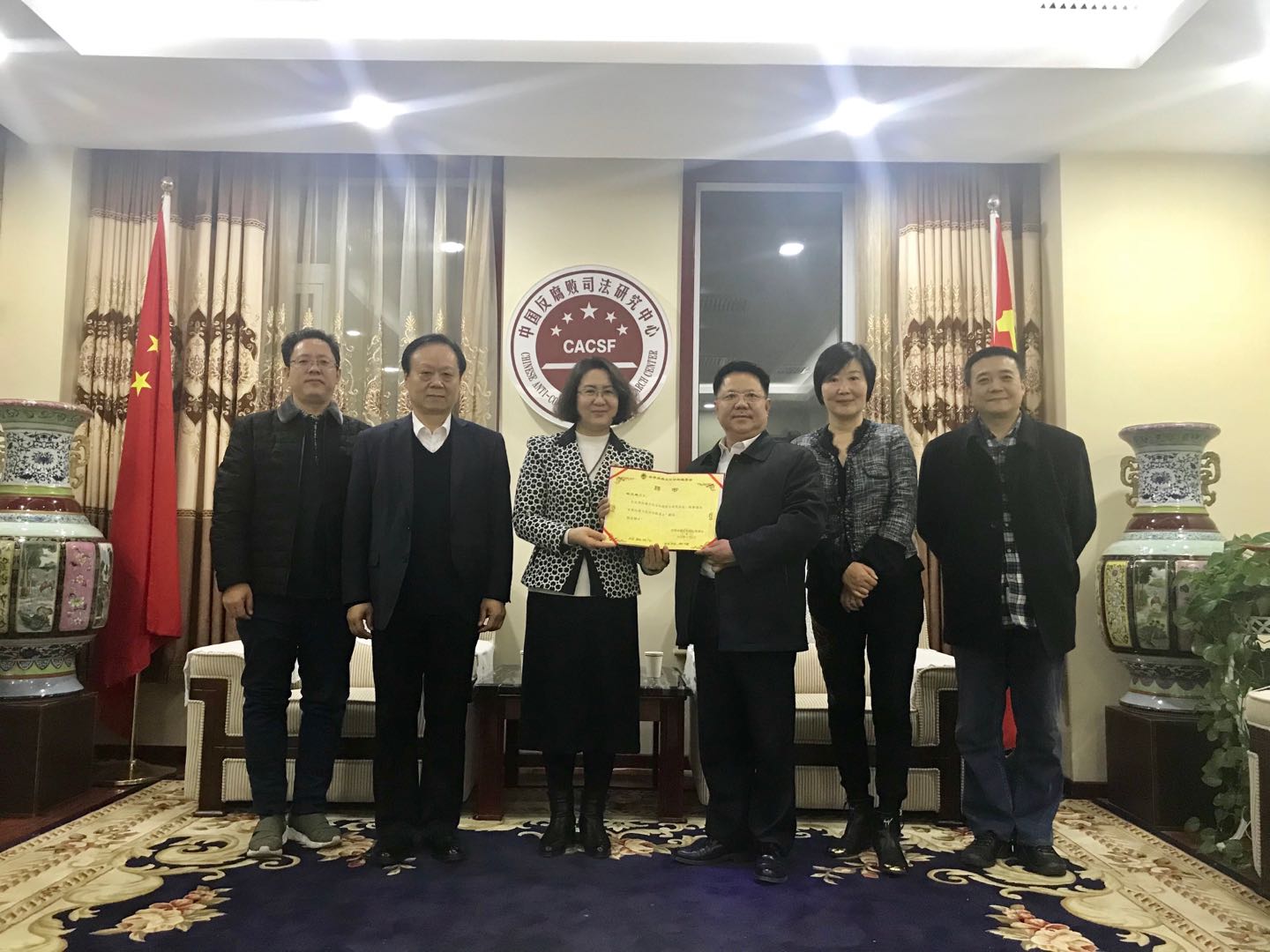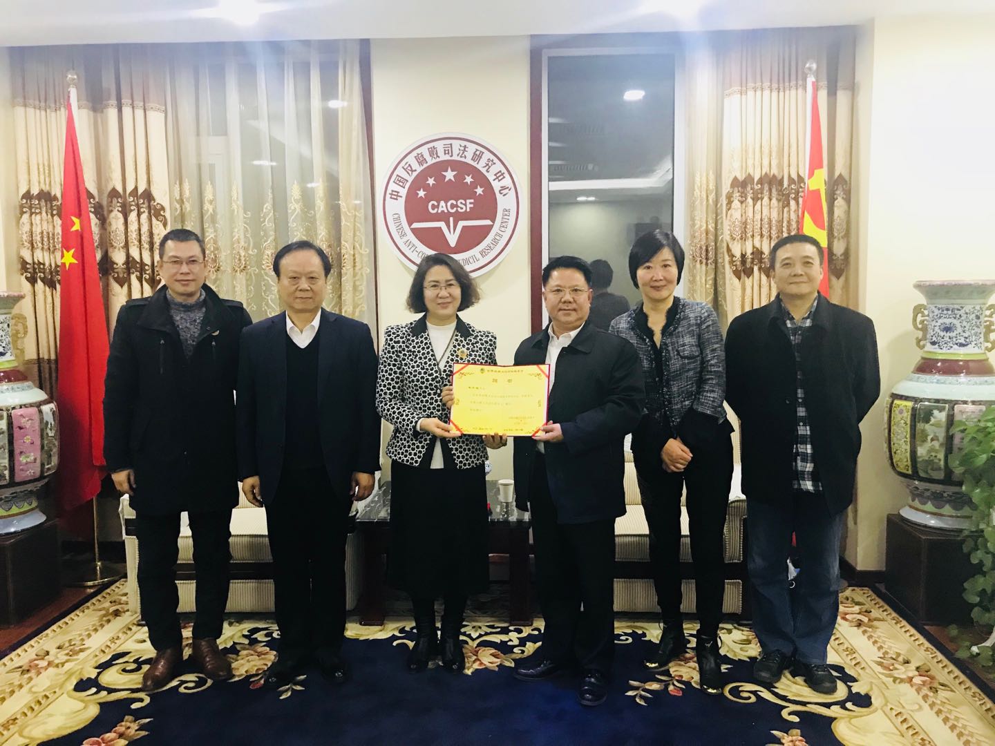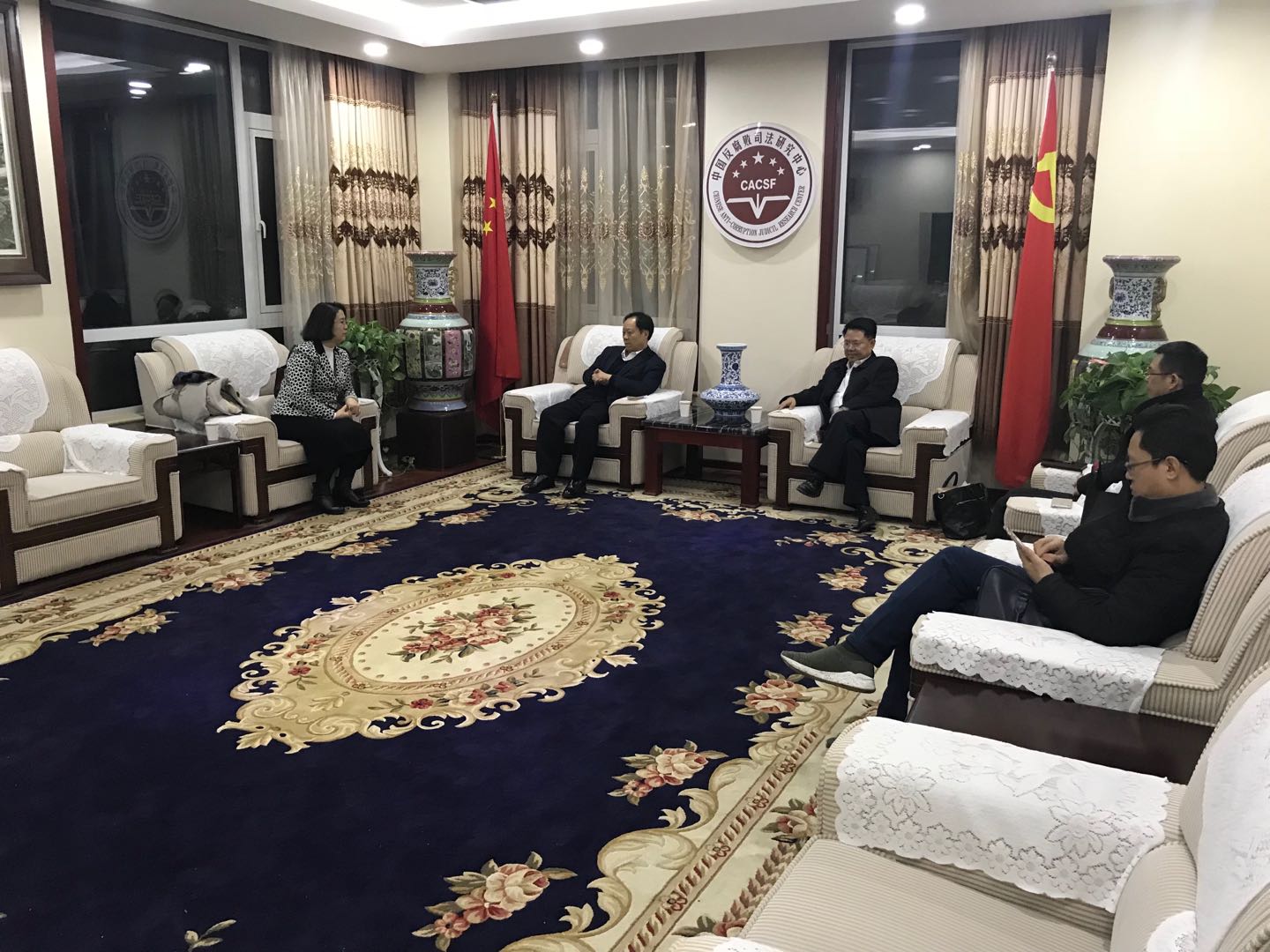 世界丝路文化论坛组委会主席王伟华与中国百强企业中太投资集团+中太建设集团董事局主席李文健在中国反腐败司法研究中心,与中航巡天董事局顾问委会轮值主席韦文斌及中国反腐败司法研究中心丛飞龙等有关部门负责人共同探讨合作事宜。