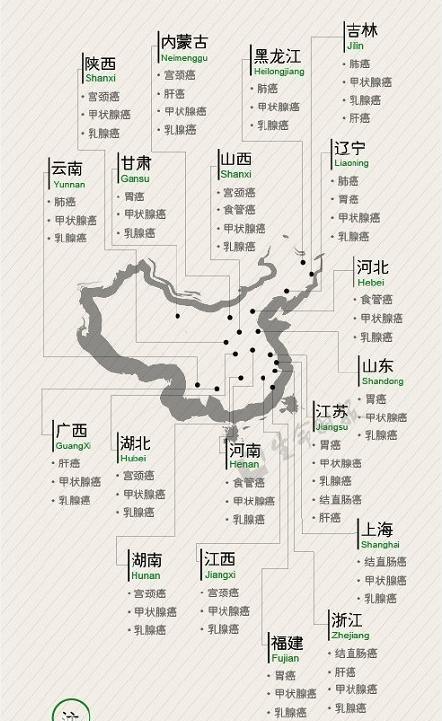 中国各省癌症分布地图!