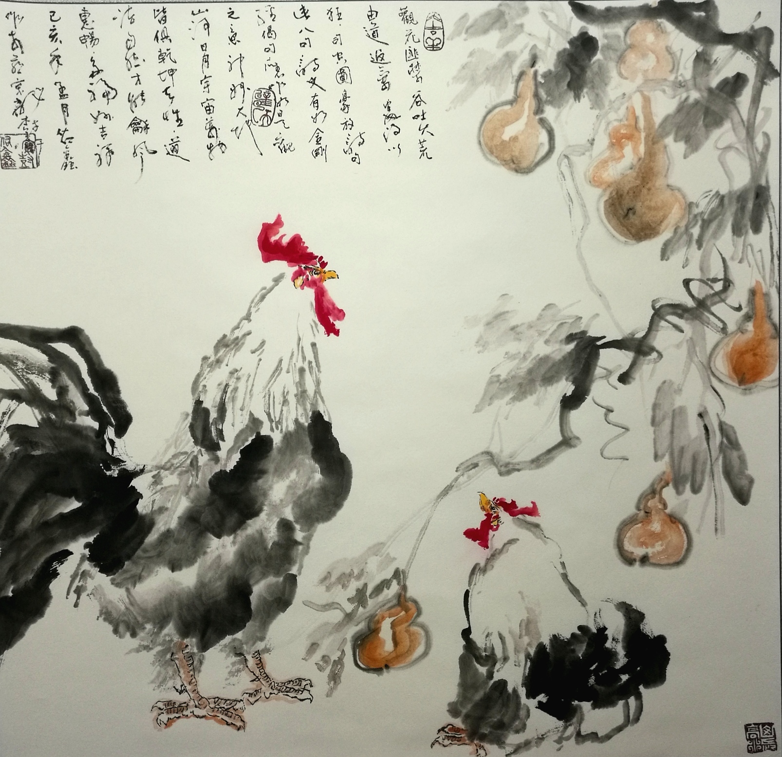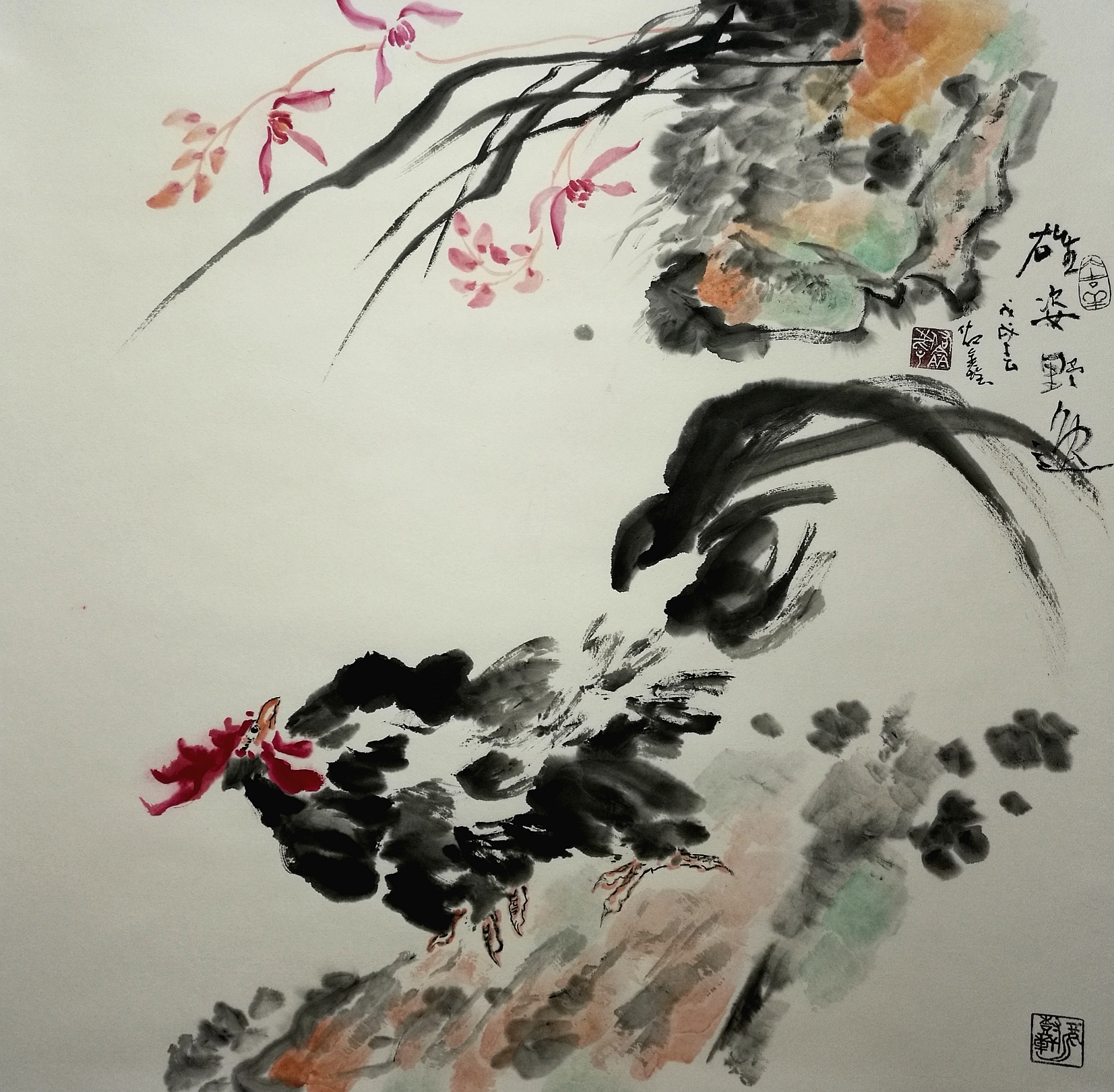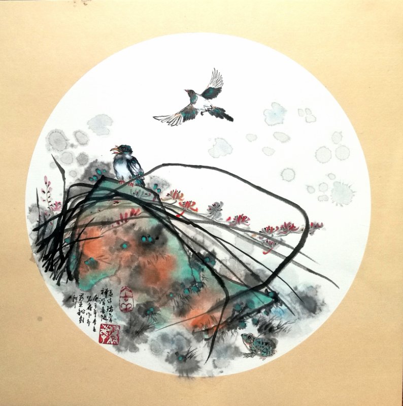 作品名称:物华天宝、作品编号——花鸟003 规格:68cm×68cm(2平方尺)作品材质:纸本,作品己装裱