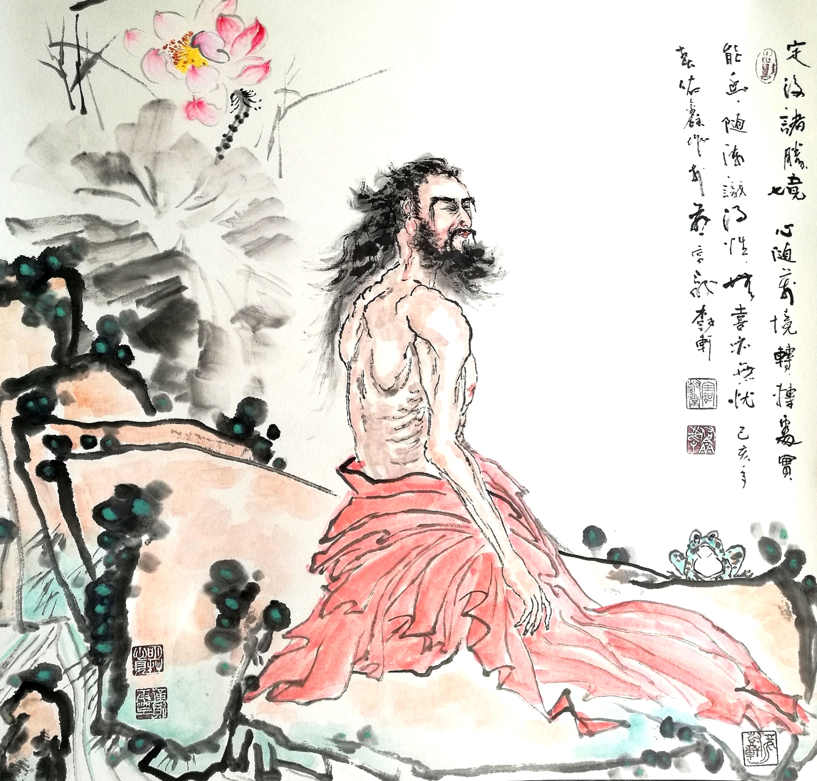 (作品表达闭关入定,定中现万法,不执不着不住,心识朗朗然,无喜亦无忧,出定心识妙胜境。)