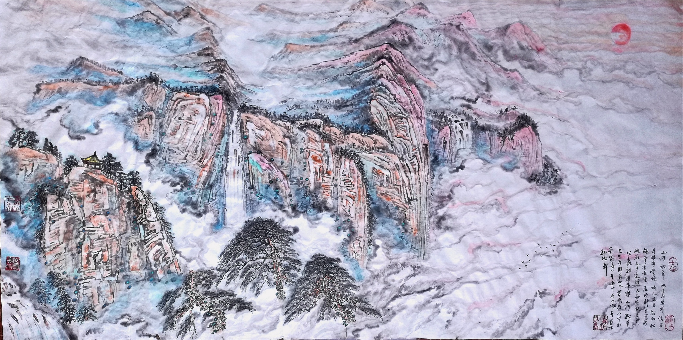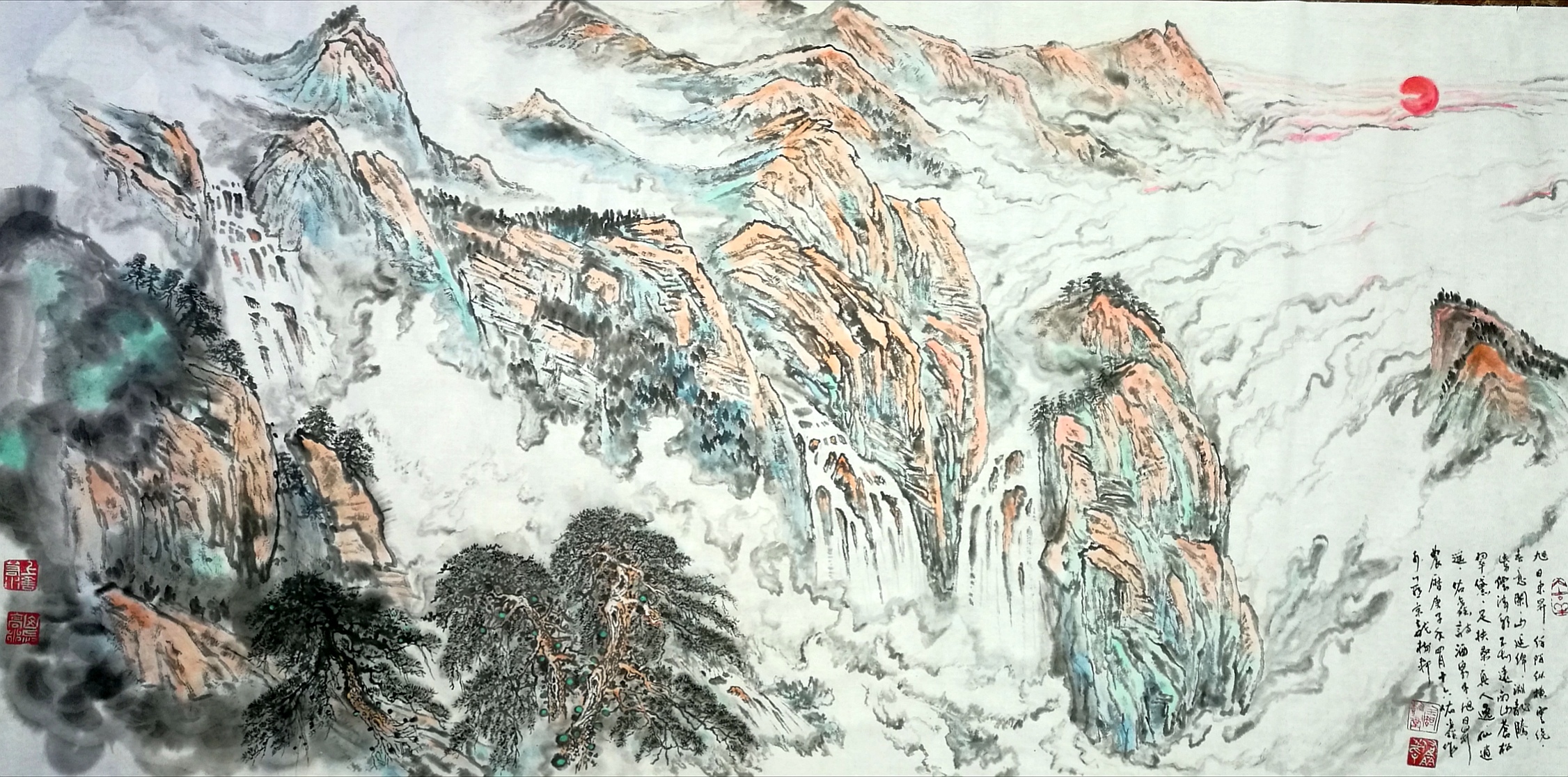 作品名称:旭日东升渊龙腾、作品编号——山水016 规格:68cm ×136cm(4平方尺)作品材质:纸本,作品未装裱、