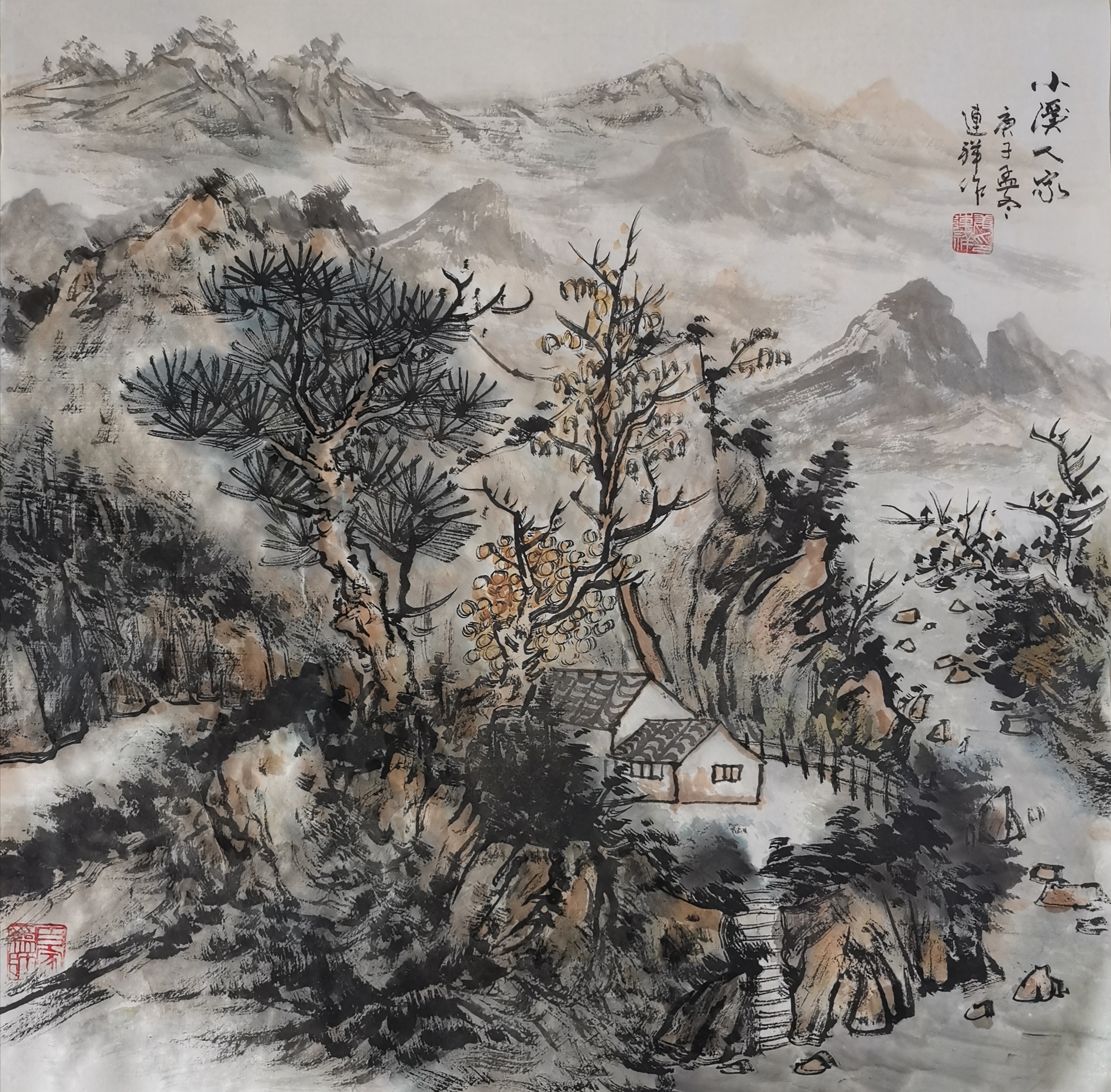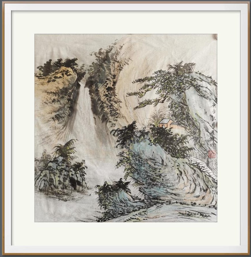 作品名称:幽居图,画轴已裱好,直接挂即可,作品规格:69X69㎝ 编号:05