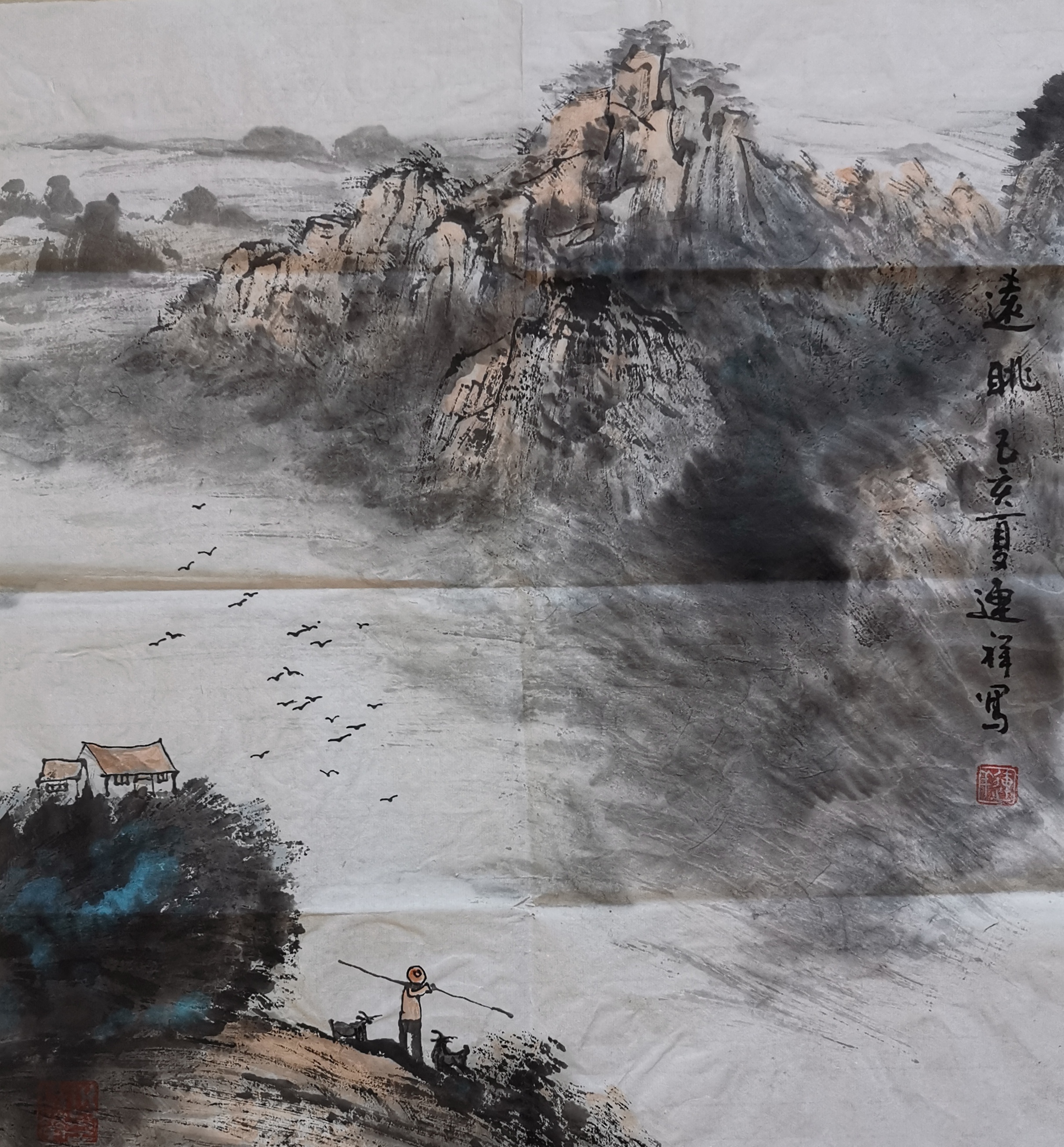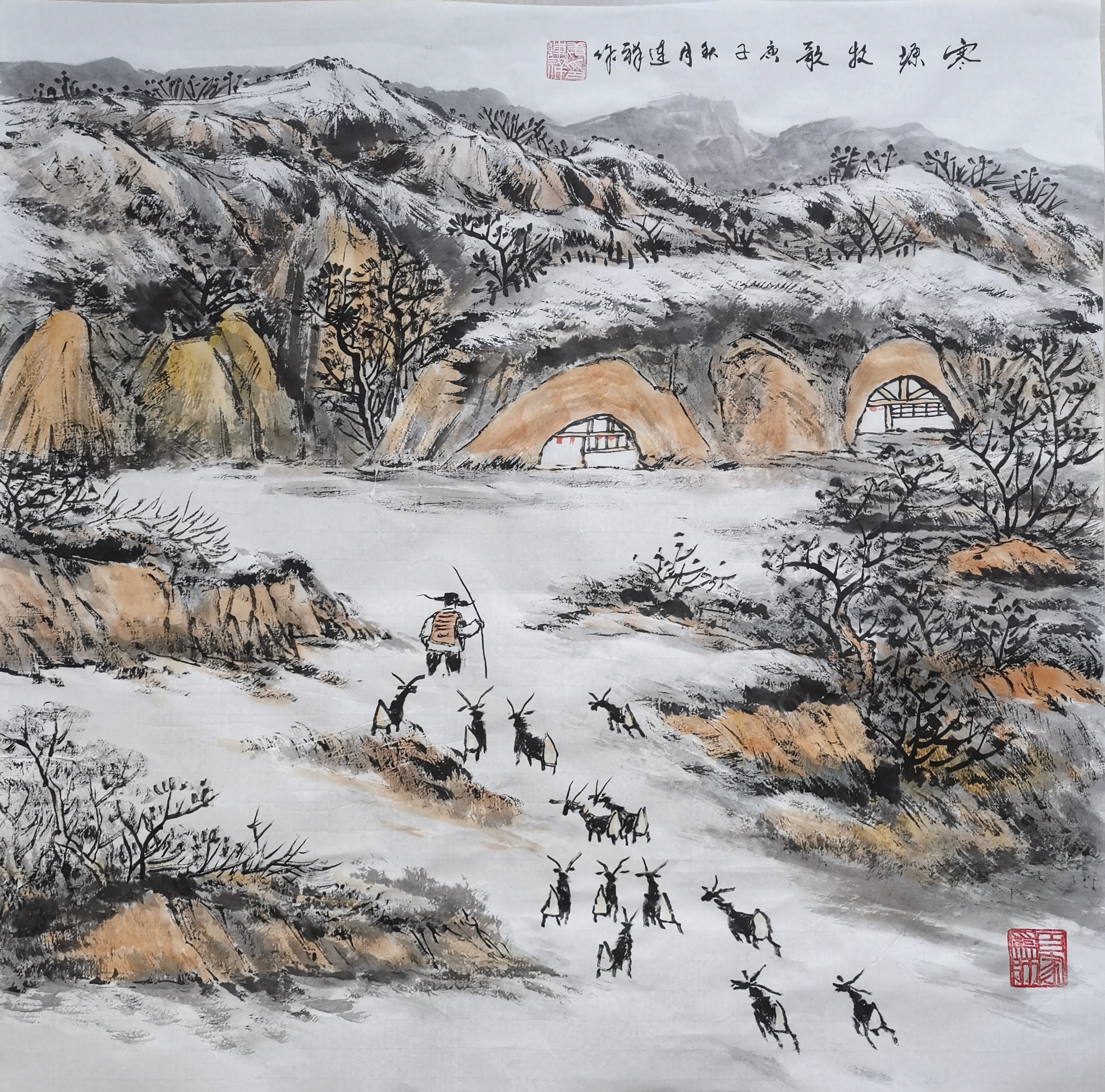 作品名称:寒塬牧歌 ,规格:69X69㎝ 未装裱 编号:017