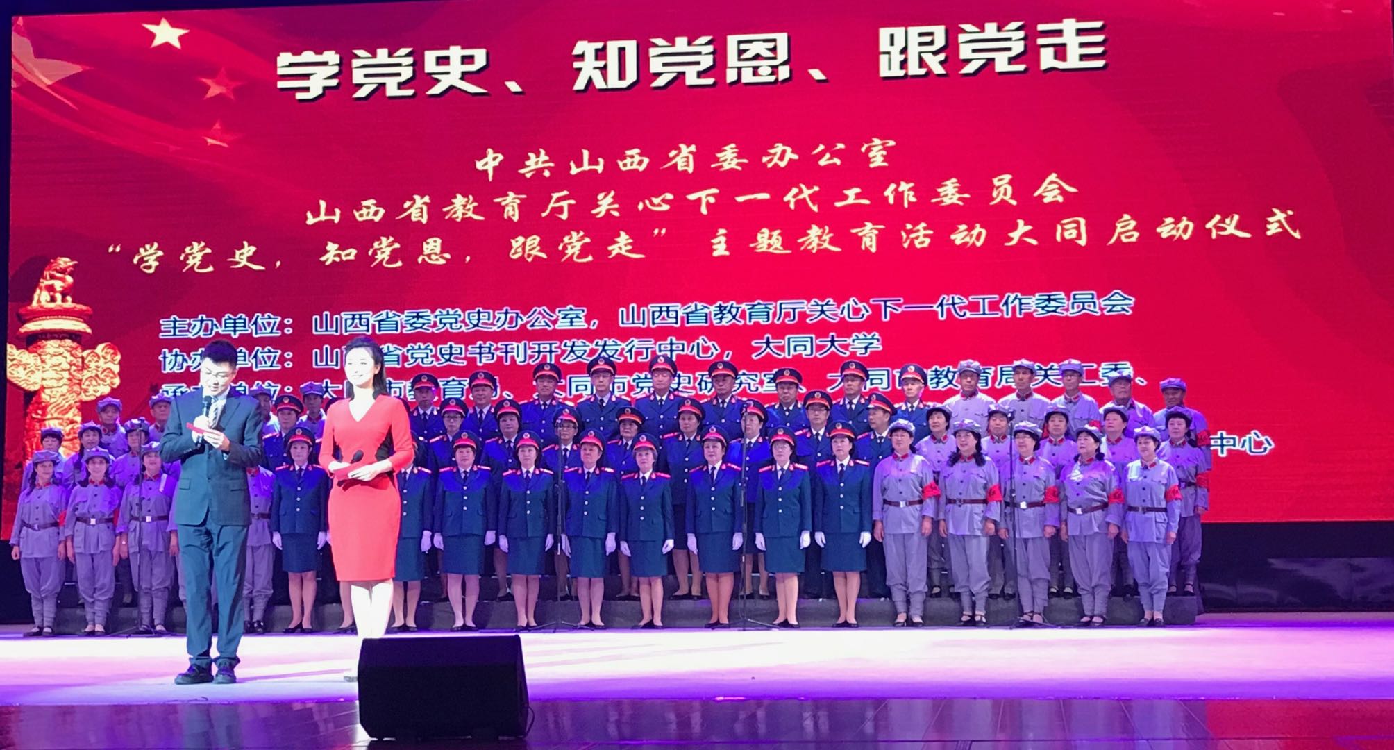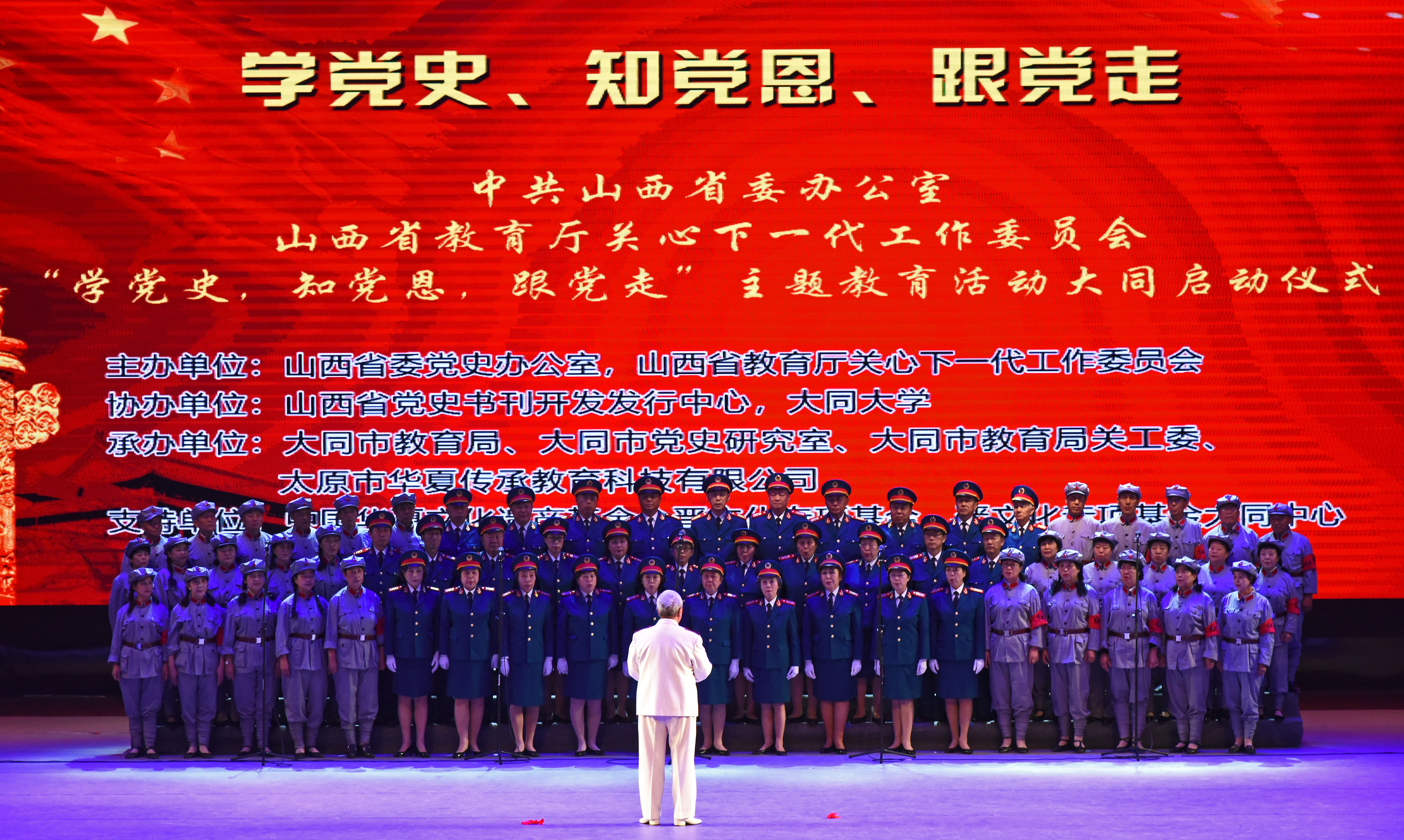 9月19日,由省委党史办公室、省教育厅关心下一代工作委员会主办的“学党史、知党恩、跟党走”主题教育活动在大同大学启动,开国将军后代合唱团应邀参加启动仪式。