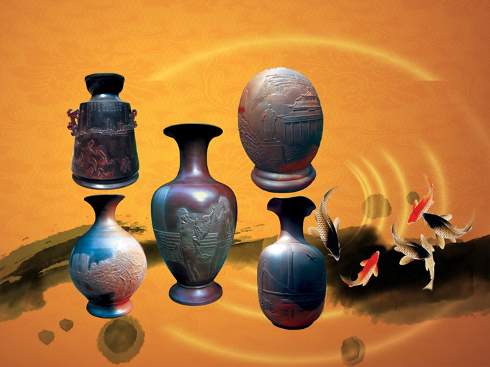 1、有一种千年青铜器皿元素。这青铜器元素体现在两方面,一是器皿象青铜器,雕刻有青铜时期文化元素;二是坭兴陶烧制后有青铜金属的哐啷清脆声音。