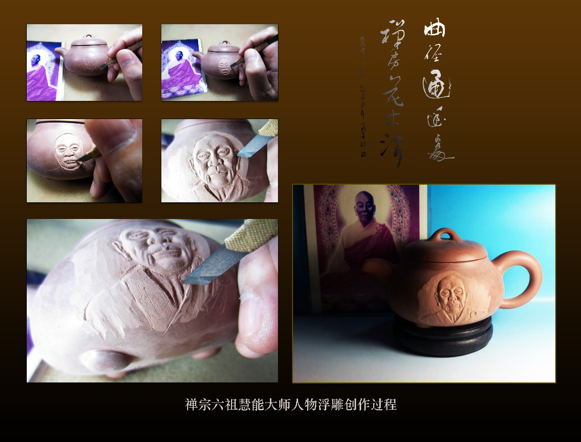 道法自然,体验着禅文化的生命幻象,这就是谢荣松带着禅的生命气脉本息雕塑创作,禅文化的空间性与物质性体量感是雕塑须臾不可分离的两面,他的作品更多体验是儒禅道思想在陶艺创作的总体表现,才构成了他的坭兴陶浮雕的审美空间。” 导师曹崇恩教授如是说。