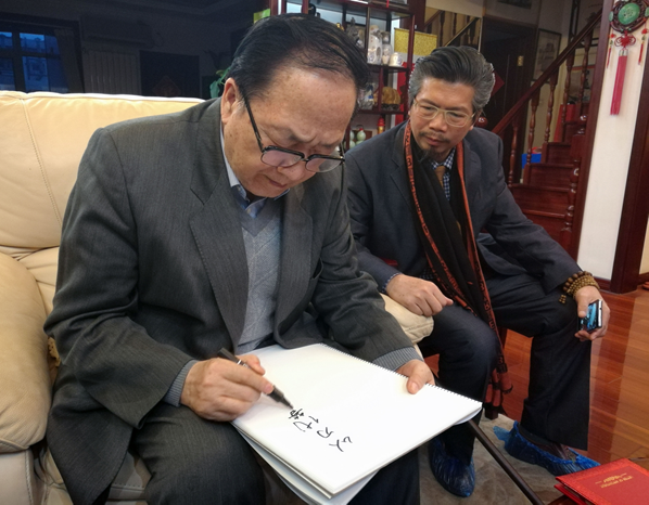 2012年7月12日,我邀请广东电视台公共频道一起到邬梦兆先生的府上进行现场采访。请邬梦兆先生谈一下对佑鑫(谢荣松)的陶艺的创作思想。