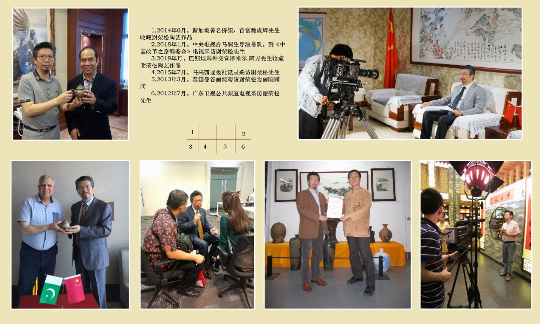 谢荣松从事的是雕塑艺术、独创剖铲底三维立面素描雕刻浮雕陶艺,为国内陶艺界的翘首,在在国内外名声赫然,他为弘扬民族陶艺,传递中国传统在古丝绸之路沿线国家进行文化艺术交流国际活动,把中国五千年的文明的民族陶艺在国际上扩大影响做了大量工作,他的行为是中国陶艺的国际行为,他的雕塑艺术、陶艺品、他的思想品德、他的行为准则、他的艺术交流互鉴国际行径称得上“国陶”。